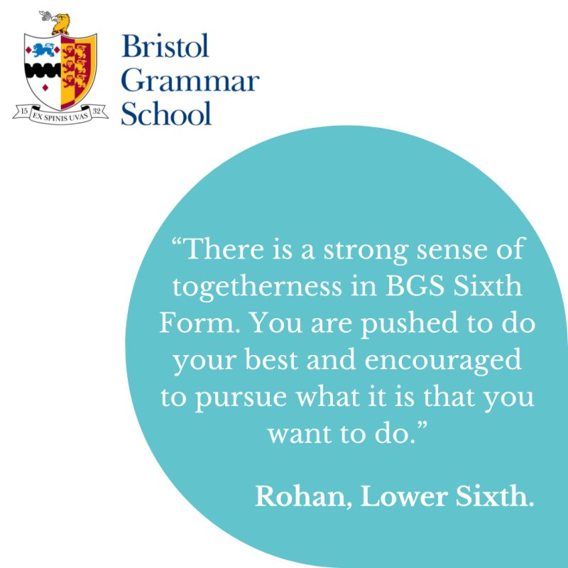 BGS would be delighted to receive an application from you to join our Sixth Form. Every year a significant number of new students join us from a wide-range of schools across Bristol and further afield. Our new joiners make up around 25% of the year-group. They are warmly welcomed and quickly become part of the BGS family.