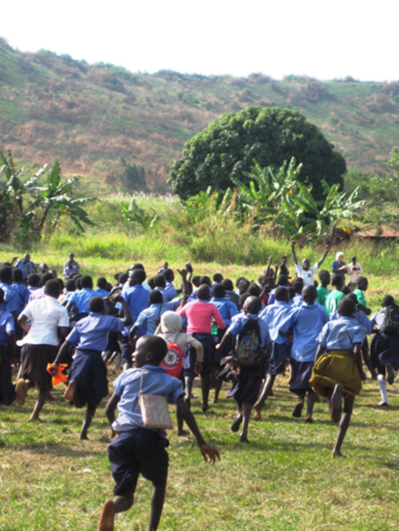 A major focus for the week was a football match between Kasongoire and Bulayango which I refereed in 35 degree heat. This was remarkable in many ways – they had not had the chance to play a match previously, on the morning of the match the whole school was deployed to cut grass, clear a termite mound in mid-pitch, put up the posts etc, and despite most playing barefoot on the rough terrain their skill and athleticism shone through. Such was the occasion that although we transported the Bulayango team and staff by mini coach. nearly 300 children ran nearly 4km along the rural tracks from Bulayango to support the away team. For the record, the score was Kasongoire 2 – Bulayango 4.